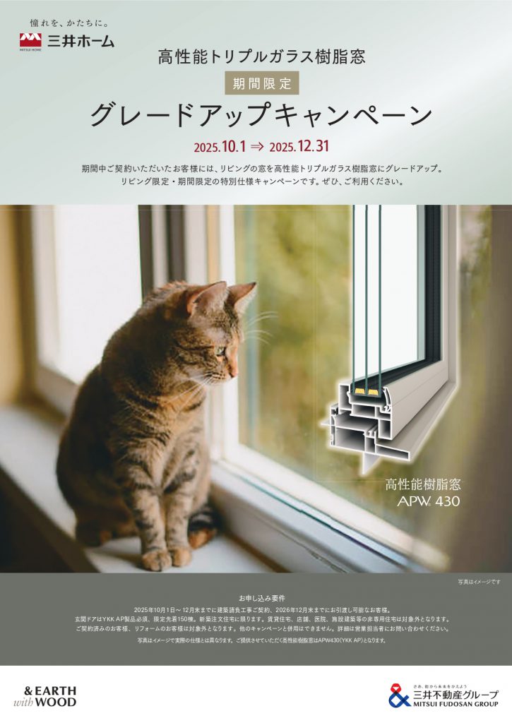 先着150棟限定 トリプルガラス樹脂窓 グレードアップキャンペーン