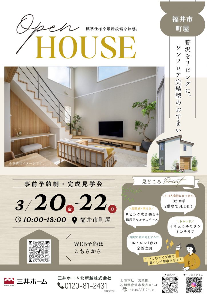 【完成見学会】3月20日~22日 ワンフロア完結型・吹き抜けのあるお住まい 〈福井市町屋〉